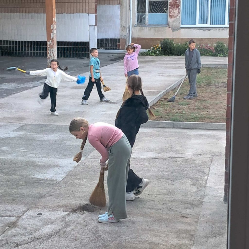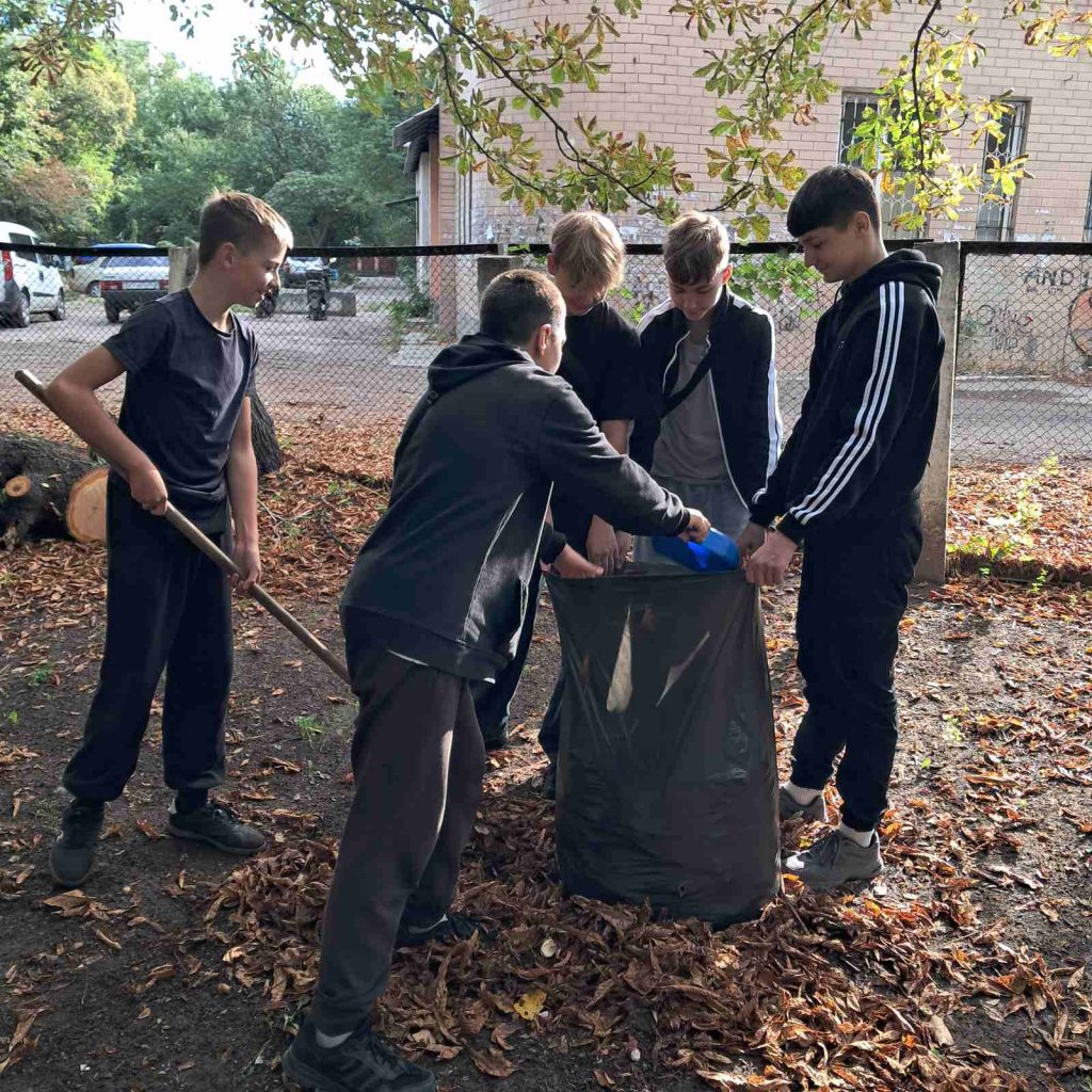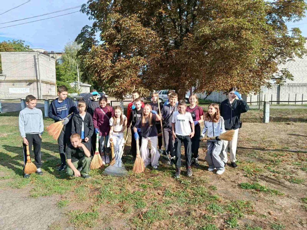 Школярі активно працювали на території біля ліцею, згрібаючи листя, збираючи інше сміття. Робота супроводжувалася веселим спілкуванням, діти допомагали один одному і змагалися, хто більше збере. Це стало чудовим прикладом того, як можна поєднати корисну справу з гарним настроєм.