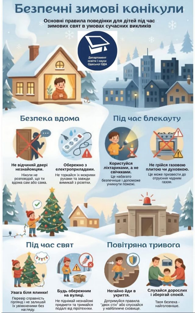 Дорогі батьки! Зимові канікули – час відпочинку, радості та сімейного тепла. У цей період важливо подбати про безпеку та емоційний комфорт дітей.